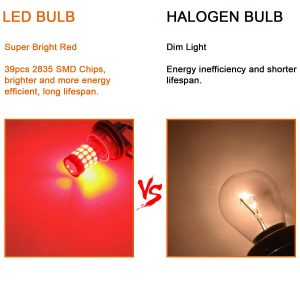 GLOFE 1157 BAY15D LED Strobe Flashing Brake Lights Bulb, Pure Red Super Bright Flashing Stop Lamps 1004 1016 2357 7528 12V 39-SMD with Projector Replacement for RVs, Cars, Trucks, Pack of 2
