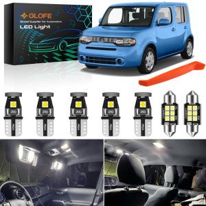 GLOFE Interior LED White Bulbs Kit Package Replacement for Nissan Cube 2009 2010 2011 2012 2013 2014 2015 Map Dome License Plate Lights, Trunk Lights + Free Install Tool,6000K Bright White