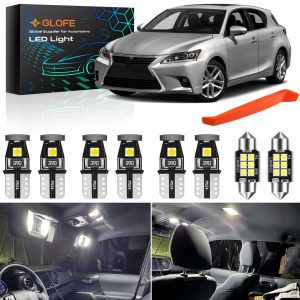 GLOFE 6000K Bright White Interior Replacement for Lexus CT200h CT200 2010 2011 2012 2013 2014 Map Dome License Plate Lights, Trunk Courtesy Door Lights LED Bulbs Kit Package + Free Install Tool