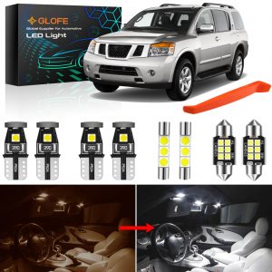 GLOFE White Interior LED Bulbs Kit Package Replacement for Nissan Armada 2004 2005 2006 2007 2008 2009 2010 2011 2012 2013 2014 2015 6500K Map Dome License Plate Lights + Free Install Tool
