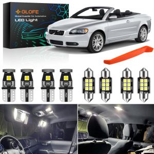 GLOFE 6000K Interior LED Bulbs Kit Package Replacement for 2006 2007 2008 2009 2010 2011 2012 2013 Volvo C70 Map Dome Trunk Lights, License Plate Lights + Free Install Tool,Bright White