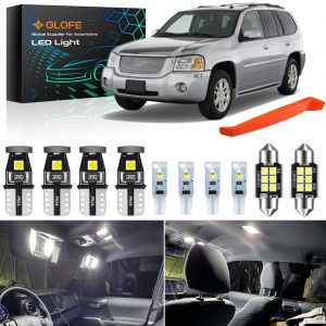 GLOFE Interior Map Dome LED Bulbs Kit Package Replacement for 2001 2002 2003 2004 2005 2006 2007 2008 2009 GMC Envoy Trunk License Plate Lights + Free Install Tool,6000K Bright White