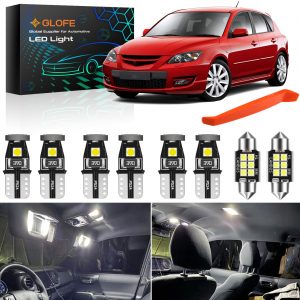 GLOFE Super White Interior LED Bulbs Kit Package Replacement for Mazda 3 2004 2005 2006 2007 2008 2009 6000K Map Dome License Plate Lights, Trunk Lights + Free Install Tool