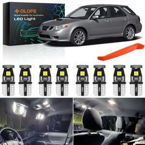 GLOFE White Interior LED Bulbs Kit Package Replacement for 2005 2006 Sasb 9-2x Map Dome License Plate Lights, Vanity Mirror Lights, Trunk Lights + Free Install Tool,6000K Bright White