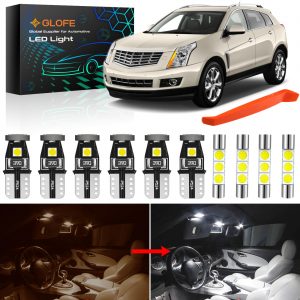 GLOFE 6000K Super White Interior LED Replacement for 2010-2012 2013 2014 2015 Cadillac SRX Map Dome Glove Box Vanity Mirror Door Trunk and License Plate Lights Bulbs Kit Package + Free Install Tool