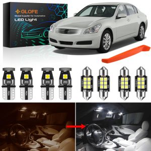 GLOFE 6500K Interior LED Replacement for 2003 2004 2005 2006 2007 Infiniti G35 Coupe Bright White Map Dome Lights, Door Coutesy Lights Trunk License Plate Lights Interior Bulbs Kit Package + Free Tool