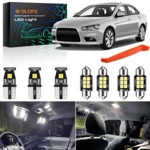 GLOFE Interior LED 6000K White Map Bulbs Kit Package Replacement for Mitsubishi Lancer 2007 2008 2009 2010 2011 2012 2013 2014 2015 Map Dome License Plate Lights, Trunk Lights + Free Install Tool