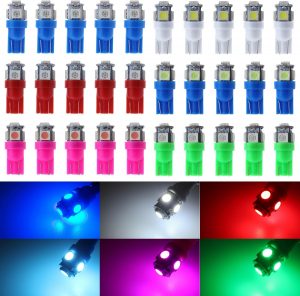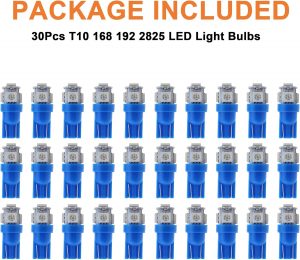 GLOFE 30 Pack Super Bright 194 LED Bulb Blue+White+Red T10 Wedge LED Bulbs 5SMD 5050 Chips 168 LED Bulb Replacement for W5W 2825 158 501 Interior Dome Map Door Trunk Courtesy Step Lights DC 12V
