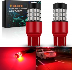 GLOFE BA15S 1156 LED Strobe Flashing Brake Lights Bulb, Pure Red Super Bright Flashing Stop Lamps 7506 1003 3497 1141 12V 39-SMD with Projector Replacement for RVs, Cars, Trucks, Pack of 2