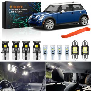 GLOFE 6000K Interior LED White Bulbs Kit Package Replacement for Mini Cooper 2001 2002 2003 2004 2005 2006 Map Dome License Plate Lights, Trunk Courtesy Door Light + Free Install Tool