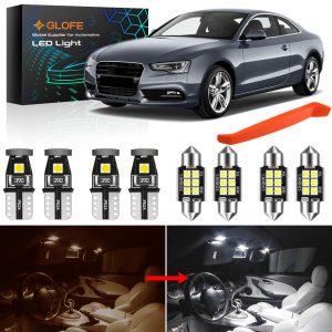 GLOFE Interior LED Bulbs Kit Package Replacement for 2008-2013 2014 2015 2016 Audi A5 A5 Quattro Map Dome Vanity Mirror Glove Box Door Trunk License Plate Lights + Free Tool,6000K Bright White