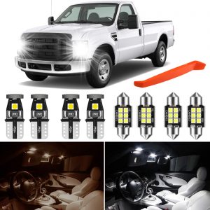 GLOFE 6000K White Interior LED Bulbs Kit Package Replacement for 1999 2000 2001 2002 2003 Ford F-250 F-350 Super Duty Dome Trunk Glove Box and License Plate Lights + Free Install Tool