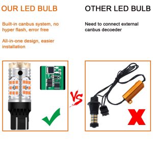 GLOFE Compatible with 7443 LED Bulb 7443NA 7444 7444NA Turn Signal Light Amber Only CANBUS Error Free Anti Hyper Flash Built-in Load Resistor Max 2600LM (2pcs)