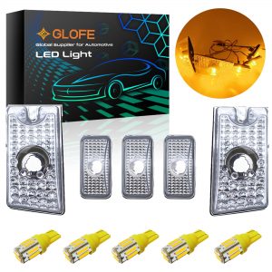 GLOFE Amber LED Cab Roof Lights Clear Housing Direct Replacement, Compatible with Hummer H2 2003-2009 and Hummer H2 SUT 2005-2009 Front Rear with T10 Amber Bulbs