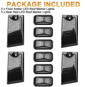 GLOFE Amber/Red LED Cab Roof Marker Lights with Smoked Lens, Compatible with Hummer H2 2003-2009, Replacement Cab Roof Lamps
