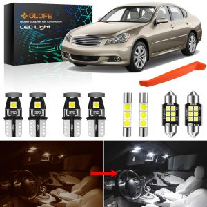 GLOFE 6000K Bright White Interior LED Replacement for 2006 2007 2008 2009 2010 Infiniti M35 Map Dome Lights, Trunk Lights, Door Lights, License Plate Bulbs Kit Package Lights + Free Install Tool