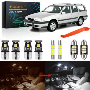 GLOFE 6000K Bright White Interior Lights Package Replacement for 1998 1999 2000 Volvo V70 Map Dome Trunk Lights, License Plate Lights, Vanity Mirror Lgihts LED Bulbs Kit + Free Install Tool