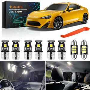 GLOFE 6000K White Interior Package Replacement for 2013 2014 2015 Scion FR-S Map Dome License Plate Lights, Vanity Mirror Lights, Trunk Lights LED Bulbs Kit + Free Install Tool,Bright White