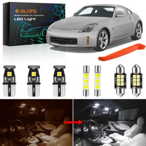 GLOFE 6000K Bright White Interior Package Replacement for 2003 2004 2005 2006 2007 2008 2009 Nissan 350Z Map Dome License Plate Lights, Trunk Lights LED Bulbs Kit + Free Install Tool