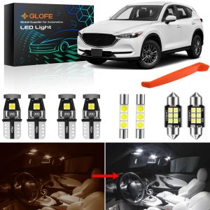 GLOFE White Interior LED Bulbs Kit Package Replacement for 2014 2015 2016 2017 2018 2019 2020 2021 2022 Mazda CX-5 6000K Bright White Map Dome License Plate Lights, Trunk Light + Free Install Tool