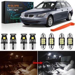GLOFE Pure White Interior 6000K LED Bulbs Kit Package Replacement for BMW 5 Series E60 528i 530i 545i 550i M3 2004-2010 Map Dome Trunk Door Vanity Mirror and License Plate Lights + Free Tool