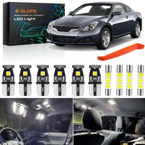 GLOFE 6000K Interior LED Bulbs Kit Package Replacement for Nissan Altima 2007 2008 2009 2010 2011 2012 2013 Map Dome License Plate Lights, Trunk Courtesy Door Lights + Free Install Tool,Bright White