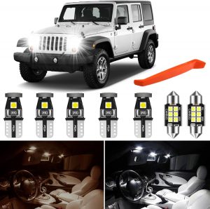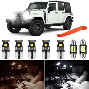 GLOFE White Interior LED Bulbs Kit Package Replacement for 2008 2009 2010 2011 2012 2013 2014 2015 2016 2017 2018 Jeep Wrangler JK 2-Door/4-Door Map Dome License Plate Lights + Free Install Tool