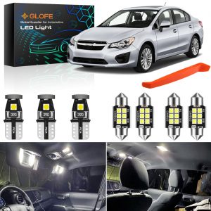 GLOFE 6000K Bright White Interior LED Bulbs Kit Replacement for Subaru WRX/WRX STI/Impreza 2008 2009 2010 2011 2012 2013 Map Dome Lights, License Plate Lights Package + Free Install Tool