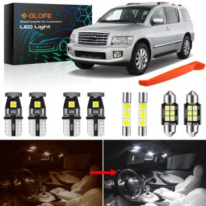 GLOFE White Interior LED Replacement for Infiniti QX56 2004 2005 2006 2007 2008 2009 2010 Map Dome Lights, Trunk Door Lights, License Plate Bulbs Kit Package Lights + Free Install Tool,6000K Bright
