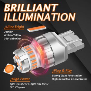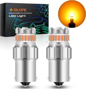 GLOFE 2023 Upgraded 3157 3155 LED Bulb Turn Signal Amber Yellow 400% Brighter, 3056 3156 4057 4157 LED Light for Blinker Turn Signal Lights, Side Marker Light, Brake Tail Lights, Pack of 2