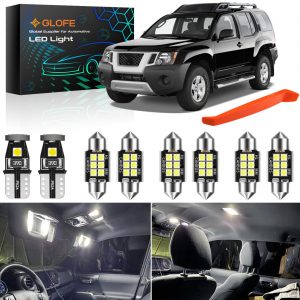 GLOFE White Interior LED Bulbs Kit Package Replacement for Nissan Xterra 2007 2008 2009 2010 2011 2012 2013 2014 Map Dome License Plate Lights, Trunk Lights + Free Install Tool,6000K Bright White