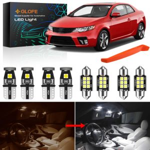 GLOFE Interior LED Bulbs Kit Package Replacement for Kia Forte 2010 2011 2012 2013 Map Dome Lights, Trunk Light, Vanity Mirror Lights, License Plate Lights + Free Install Tool,6000K Bright White