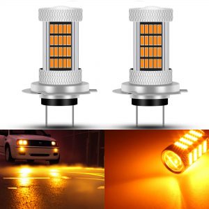 GLOFE 92SMD 4014 LED Chips 3000K Amber Yellow H7 LED Fog Light Bulbs or Daytime Running Driving Lights (DRL Lamps), 300% Brightness Replacement for Cars,Trucks, SUVs, Vans, Play and Plug (Pack of 2)