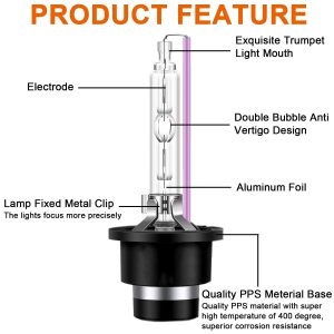 GLOFE D4S Xenon HID Headlight Bulbs 10000K Blue 35W 66440 42402 42402WX Replacement High/Low Beam, Super Bright HID Headlights Original Replacement, Easy installation, UV Resistant, Pack of 2