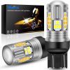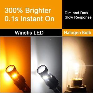 SUPER BRIGHT: Each 1157 led bulb is equipped with 16PCS Customized High brightness 3030 SMD chips, 5.5W per bulb, only 1/4 energy consumption of original halogen bulb but 3 times brighter, providing 6500K Xenon White light or 3500K Amber Yellow light. Instant-on capability without warm-up time. Note: The Operating Voltage is 12V, DO NOT WORK FOR TRUCKS.