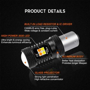 Be the first to review “GLOFE 1157 P21/5W 2057 2357 7528 BAY15D Switchback LED Bulbs 300% Brighter 3030 SMD Amber and White Dual Color LED Bulb with Projector for Car DRL Turn Signal Lights Parking Lights, Error Free”