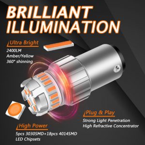 【Dual Brightness】- Enjoy the convenience of dual brightness in one bulb. Use the dim mode as a tail light and switch to the bright mode for turn signal functionality. Stay visible on the road with ease.