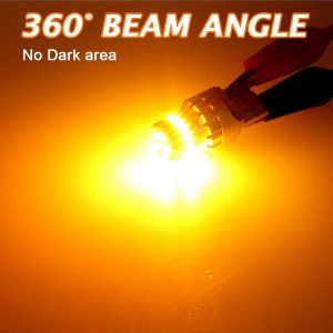 Unique imitated halogen shape design. Resembling halogen bulb shape design and sequencing 5 pieces 3030-SMD & 18 pieces 4014-SMD LED chips precisely around the light. Delivering 360° high luminous efficiency with full amber light, easier to be noticed and safer to drive