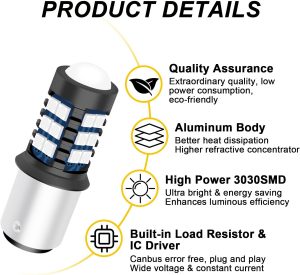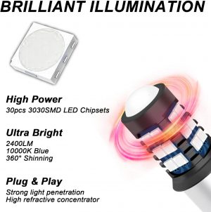 GLOFE 3030 30SMD 1157 1004 LED Bulb Daytime Running Light 10000K Blue 400% Brighter, 7528 2357 2057 BAY15D LED Light for DRL Turn Signal Lights, Backup Reverse Parking Lights, Pack of 2