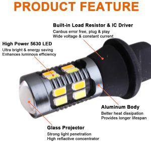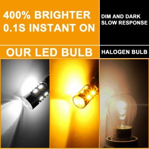 Super Bright: Using high power, high performance 3030 SMD LED chips, Truly 400% Brighter than Halogen. 360° degree full angle illumination, ensure driving safety