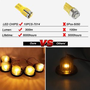 【Package Contents】: Our kit includes 5 x Smoked lens, 5 x T10 LED Amber light 5050-SMD bulbs, and rubber grommets, providing everything you need for the installation process.