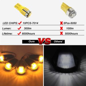 【Easy to Install】The Cover and Base are undetachable, Direct replacement for OEM factory stock cab marker covers. Perfect fit & No leakage.5 pieces Amber T10 194 168 W5W 2825 led bulbs are included and no need to purchase by yourself, save money and time.Positioning & drilling is needed when installed on other vehicles.