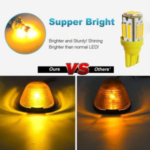 Pack Includes: 5x Amber Roof Cab Marker Lights with 5 bases (Assembly Kits) + 5x Amber T10 194 168 LED Bulbs + 5x T10 Socket + 10x Soft Pads + 15x Screws