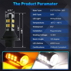 GLOFE 3157 LED Bulb Switchback 3057 4157 White Amber CANBUS Anti Hyper Flash LED Automotive Front Turn Signal Light Bulb Plug and Play