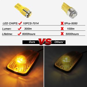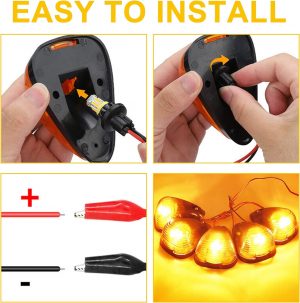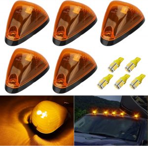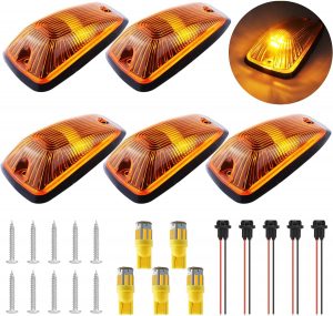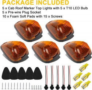 Package Contents: The set includes 5 amber cab roof marker light lenses, 5 bases, 5 amber T10 LED bulbs, 10 soft pads, 15 screws, 5 T10 sockets, and a 1-year warranty with responsive customer support.