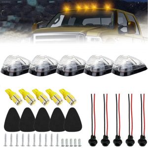 Package Included: 5x Clear Roof Cab Marker Lights with 5 bases (Assembly Kits) + 5x T10 socket wire + 10x soft pads + 15x screws + 5x Amber T10 194 168 LED Bulbs.