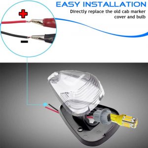 Easy to Install: Just remove your factory cab lights and bolt these in their place. Come with T10 plug, convenient for modifying & rewiring. Wiring: White is to Ground and Black is to Positive. Modification or drilling might be required for the non-installed vehicles. Professional installation is highly recommended.