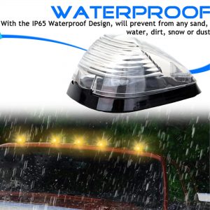 Wide Compatibility: This Clear LED Cab Roof Running Marker Light Kit is designed for 1999-2016 Ford E-150 E-250 E-350 E-450 E-550 F-150 F-250 F-350 F-450 F-550 Super Duty pickup trucks with stock cab markers and 2017-2018 E-350 E-450 Super Duty Trucks (not compatible with 2017-2018 F250-F550 models). The lights serve multiple functions, including Cab Marker, Cab Marker Clearance Light, Roof Running Light, and Roof Clearance Light, replacing parts # 264142BK, 264142CL, and 264142AM.