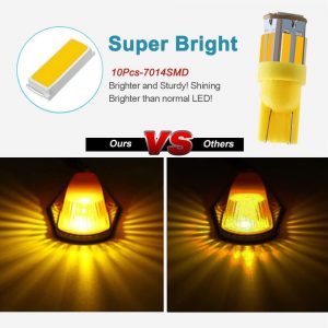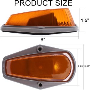 【High Quality】Use ultra-strong ABS plastic amber cab marker lens covers with UV treatment, long time exposure will not fade. Soft flexible rubber bases fit for fast feet or curved roofs, perfect fit without leakage. And come with high brightness 10SMD T10 amber led light bulbs. Waterproof and dustproof can be used in any harsh environments.