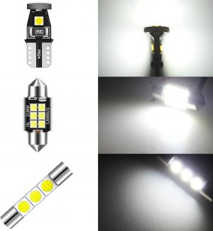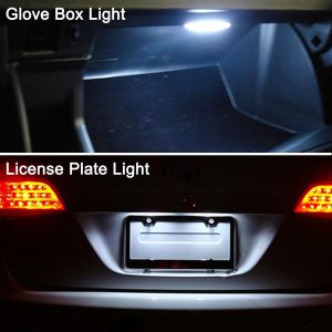 Package Includes: 2 Map Lights, 2 Dome Light,1 Glove Box Light,1 Trunk Cargo Area Lights 2 Step/Courtesy Lights and 2 License Plate Lights (10 pieces LED bulbs total and 1pcs free install tool).